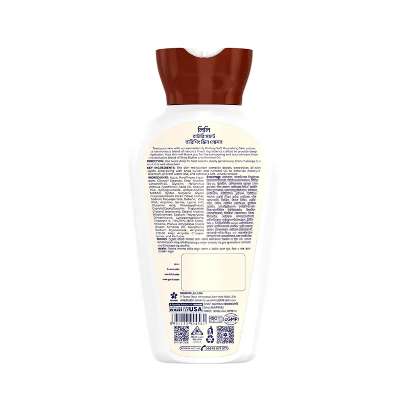 Lily Buttery Soft Nourishing Skin Lotion delivers deep hydration and lasting softness for dry, dull skin. Enriched with Moisturizer Complex, Shea Butter, and Almond Oil, it nourishes, repairs, and keeps skin buttery soft for up to 72 hours.